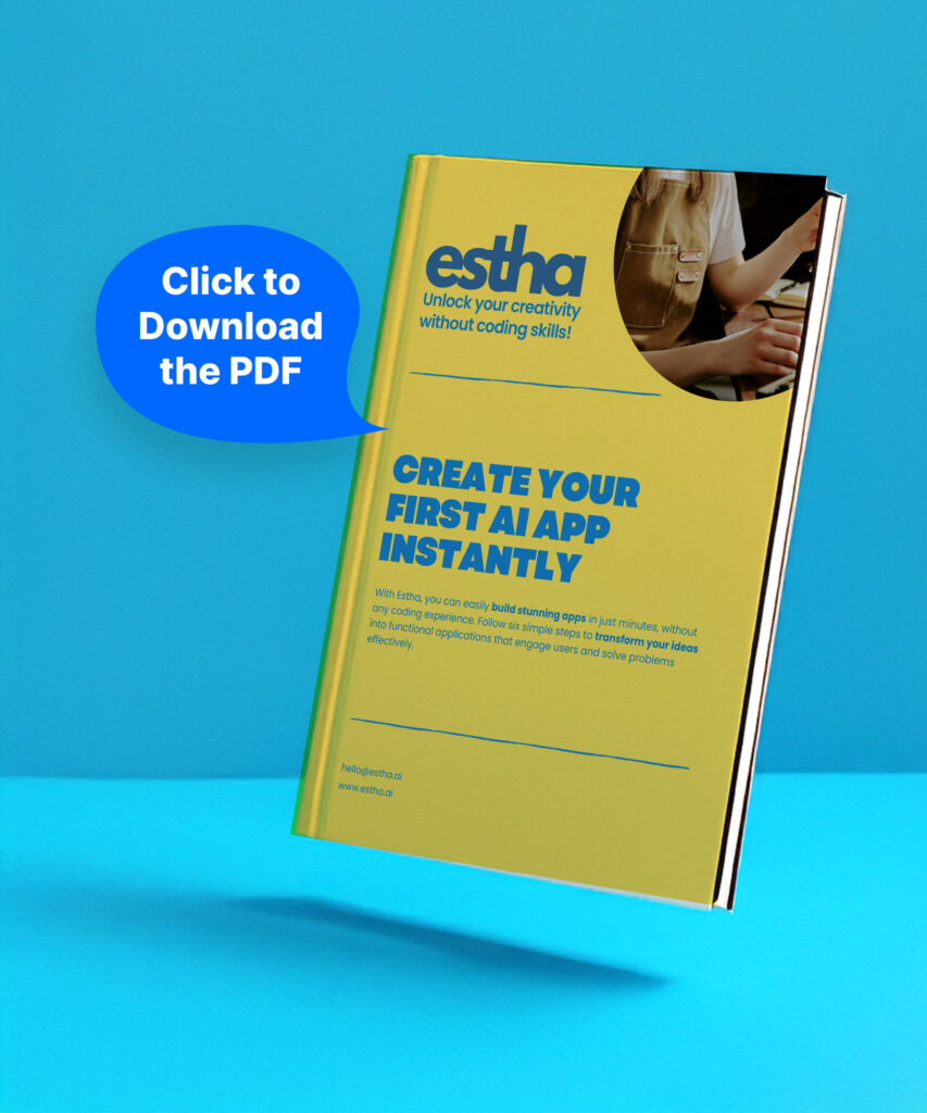 resources Explore these resources to start you off with Estha! Build your app with this comprehensive guide The Estha Ecosystem Don’t just build. Launch, Sell, Share and Learn with the Estha ecosystem.Here’s how we support our App Creators. Our aim: to have you learn how to use Gen-AI and build your own AI App at rocket speed. learn more We support founders to launch AI-powered startups quickly and scale, with expert resources, advice, access to network, investors and mentors. learn more We don’t just stop at helping our members build apps – we help them make money out of these works, or at the very least, help them share with others generously. learn more